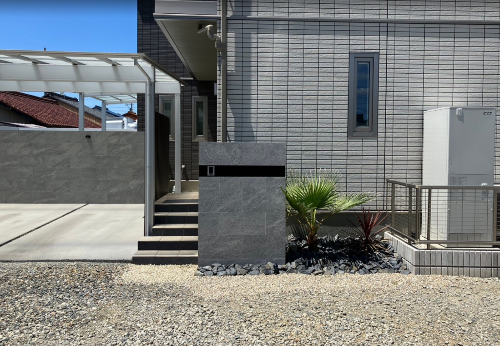 ビフォーと比べてみますと、玄関前のお家の【顔】とも呼べる表札が、宅配ボックスもつけ大きく生まれ変わった機能門柱とマッチして、