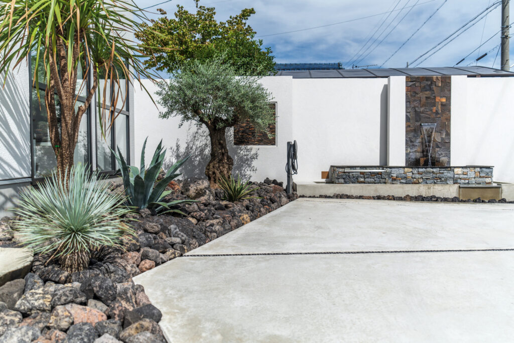 私たちは、オリーブを中心にした外構デザインを提案し、住まいに自然の癒しをプラスするお手伝いをしております。