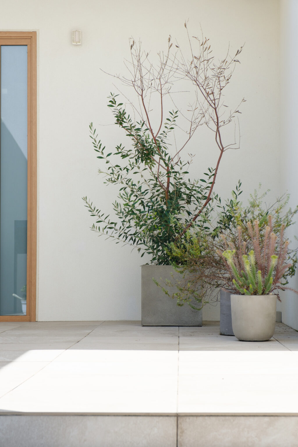 デザイン性のある鉢やスタンドを使えば、さらにおしゃれな外構になります。