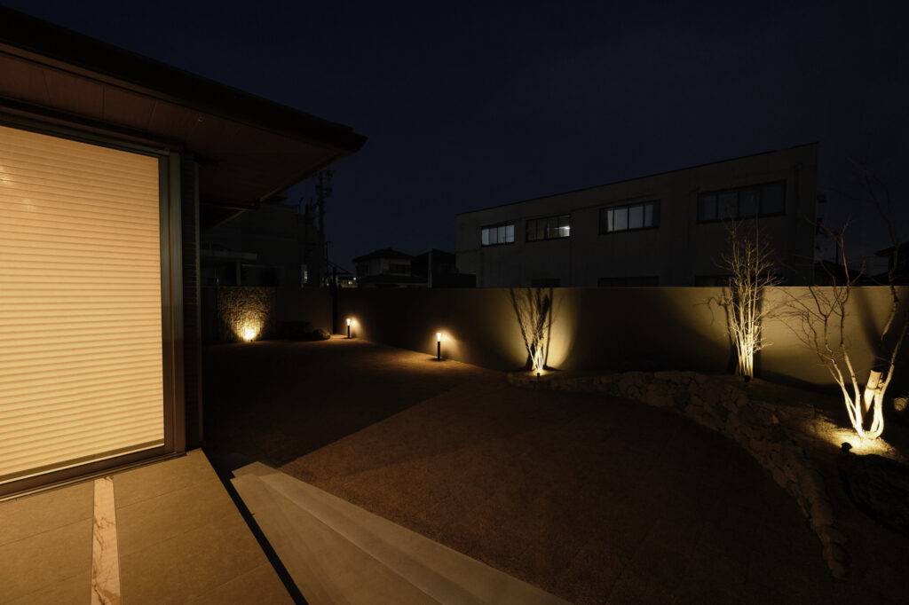 加えて、照明は防犯性も高めながら、夜の景観も引き立てます。