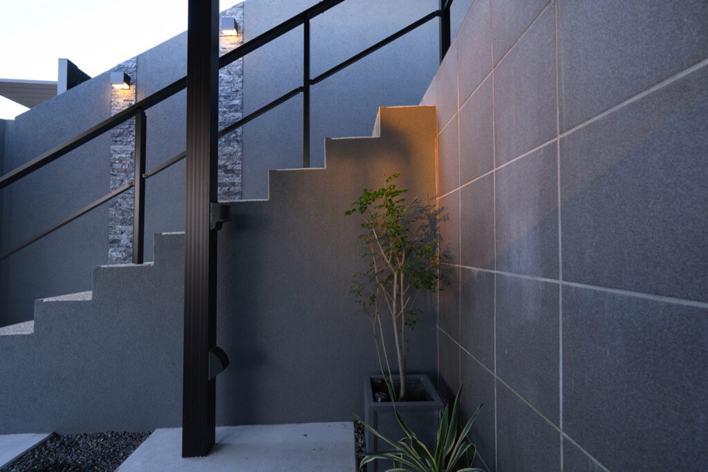 さらに、照明だけでは冷たい印象になりがちですが、そこに植栽の柔らかな質感が加わることで、バランスの取れた空間になります。