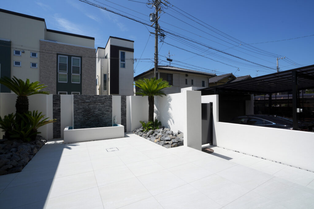 しっかり囲まれた外構は、外からの視線を遮り、安心して暮らせる環境をつくります。