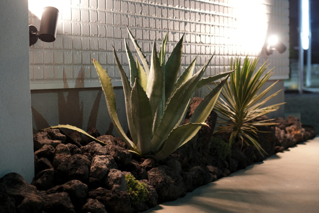 外構の魅力をさらに引き立てるのが、「植栽」と「照明」です。