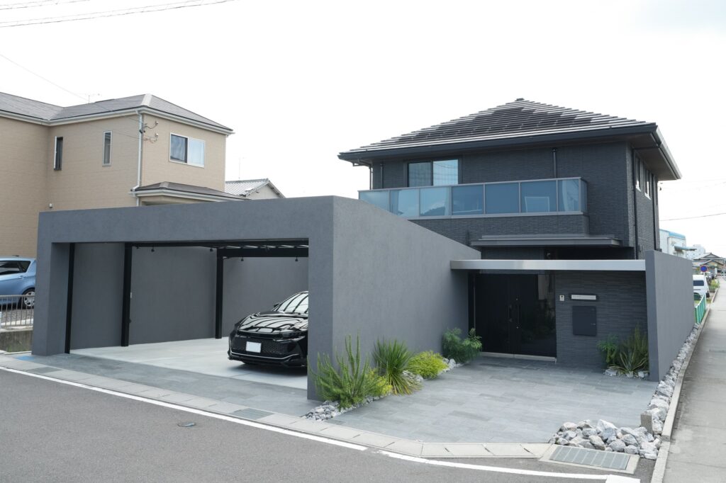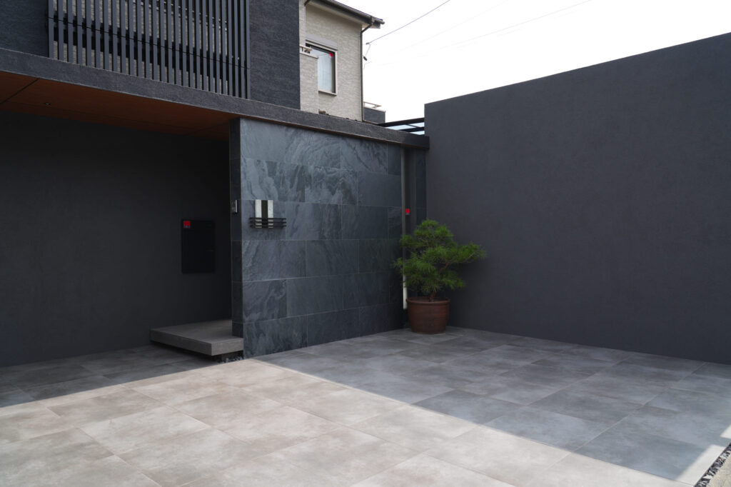 3つ目の事例は、グレー×ブラックの外観に合わせたシンプルモダンな外構デザインです。