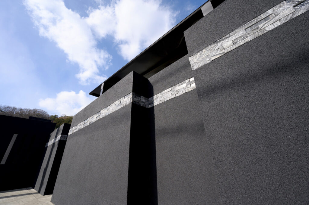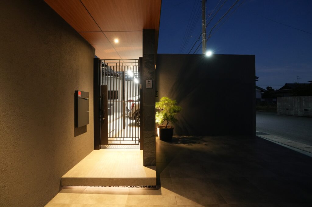 立体感のあるライン貼りが、外構に高級感と陰影を与えています。