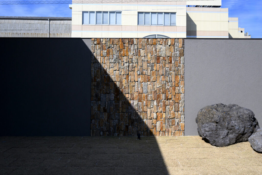 建物のファサードを活かすため、門まわりと塀にはグランドアートウォールを使用。