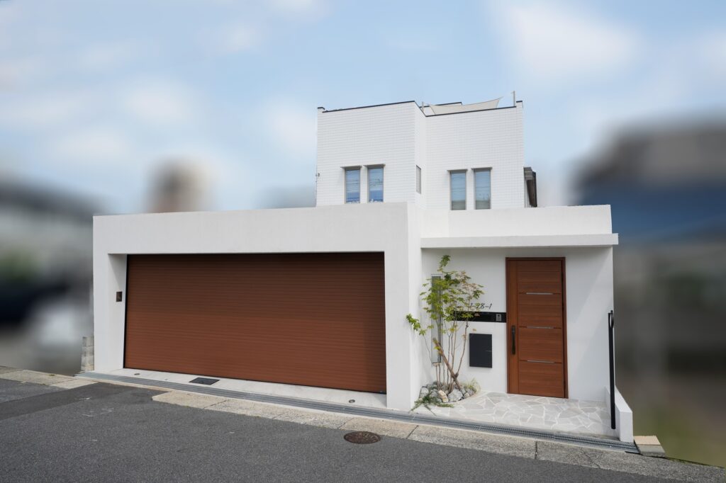 広い敷地を活かして、3台分の駐車スペースに対応した大型シャッターを導入した事例があります。