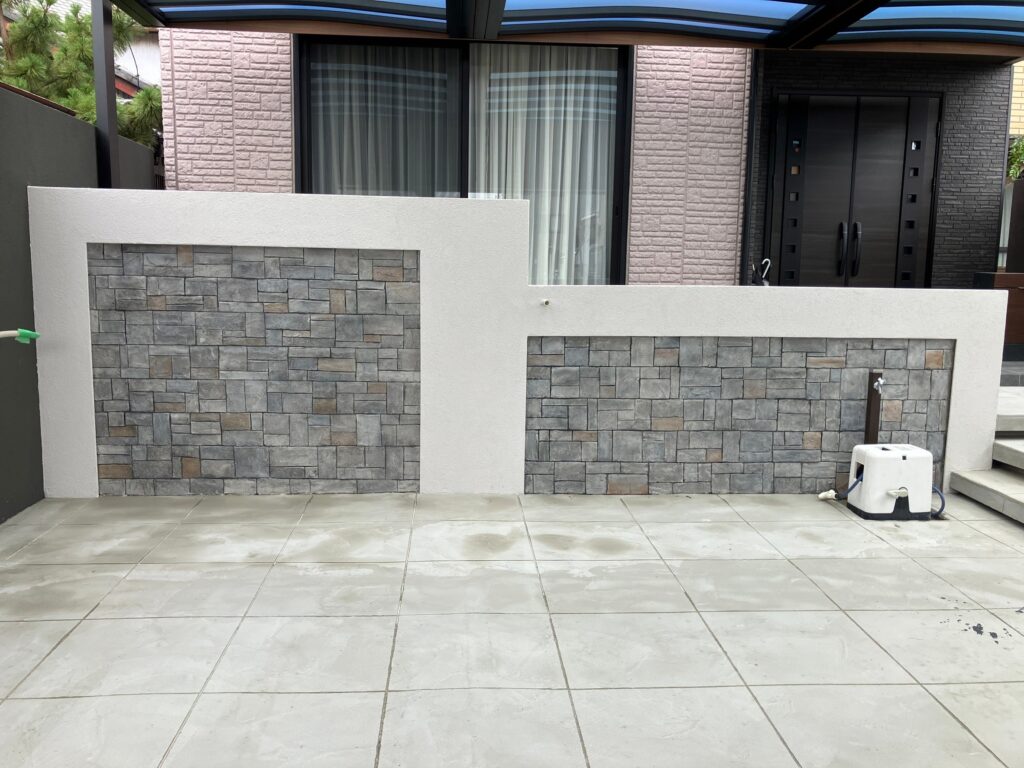 本日は、奥のテラスと駐車場を仕切るデザイン塀の施工についてご紹介いたします。