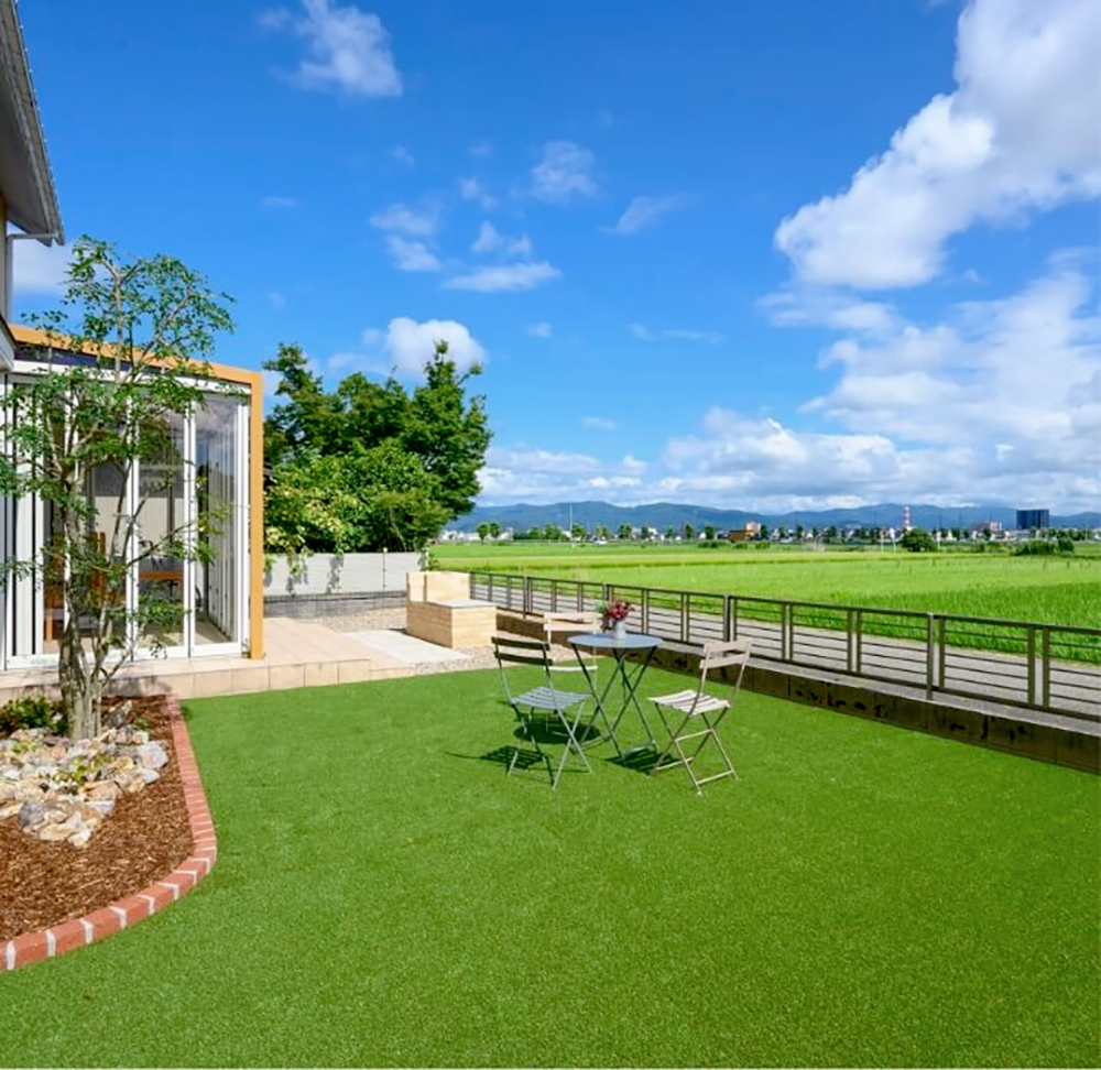 例えば、夏の強い日差しの下でも芝が劣化しにくく、年中美しい庭の景観を保てます。