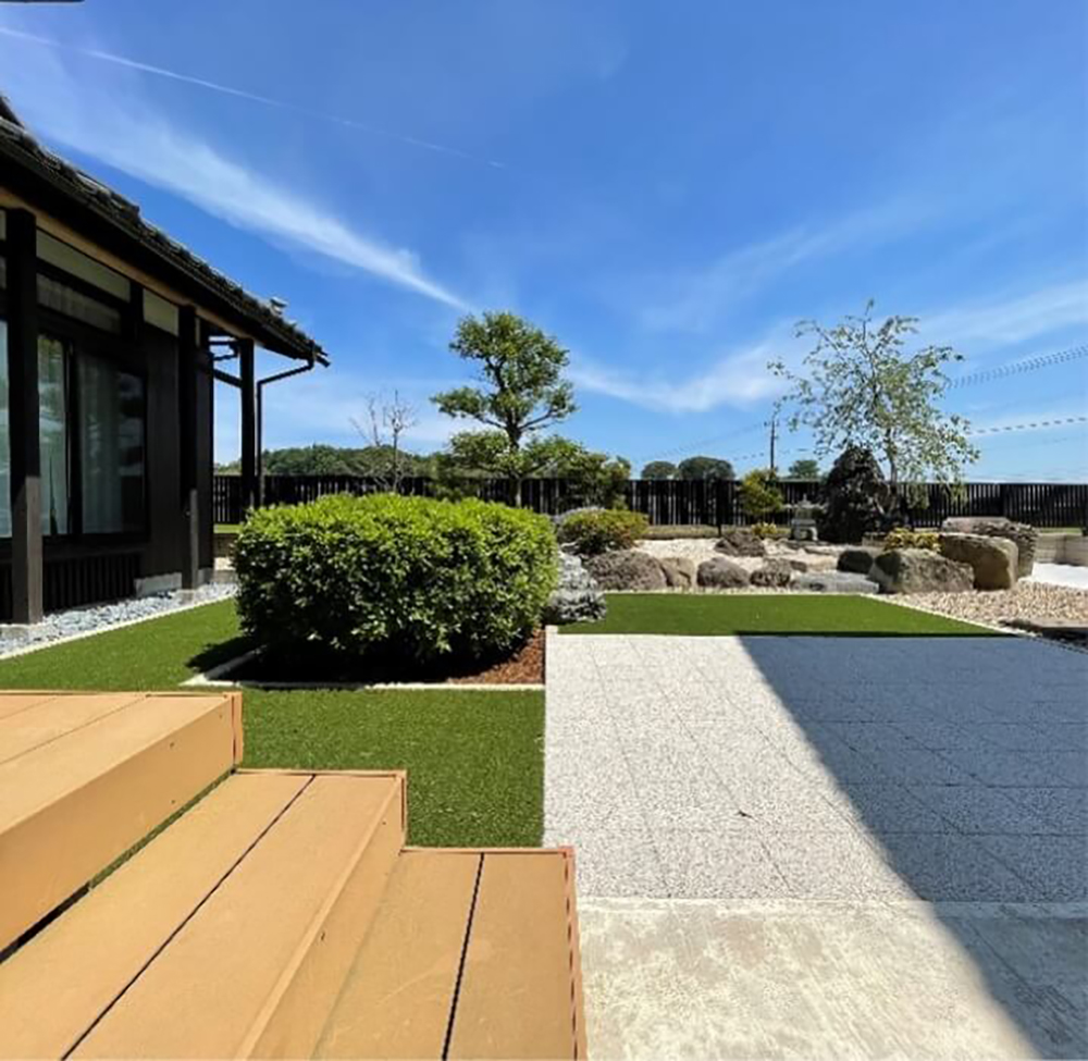 人工芝は均一で美しい緑色が特徴で、手入れの手間がなく、年中通して庭の景観を保つことができます。