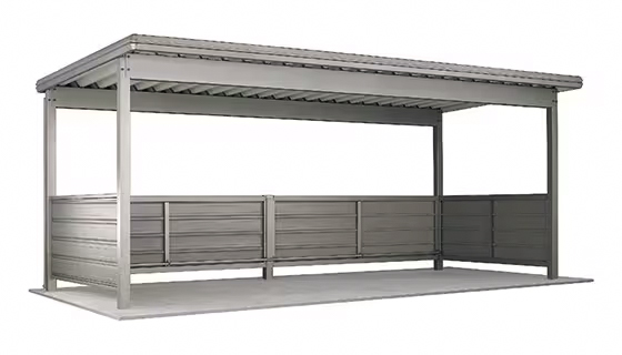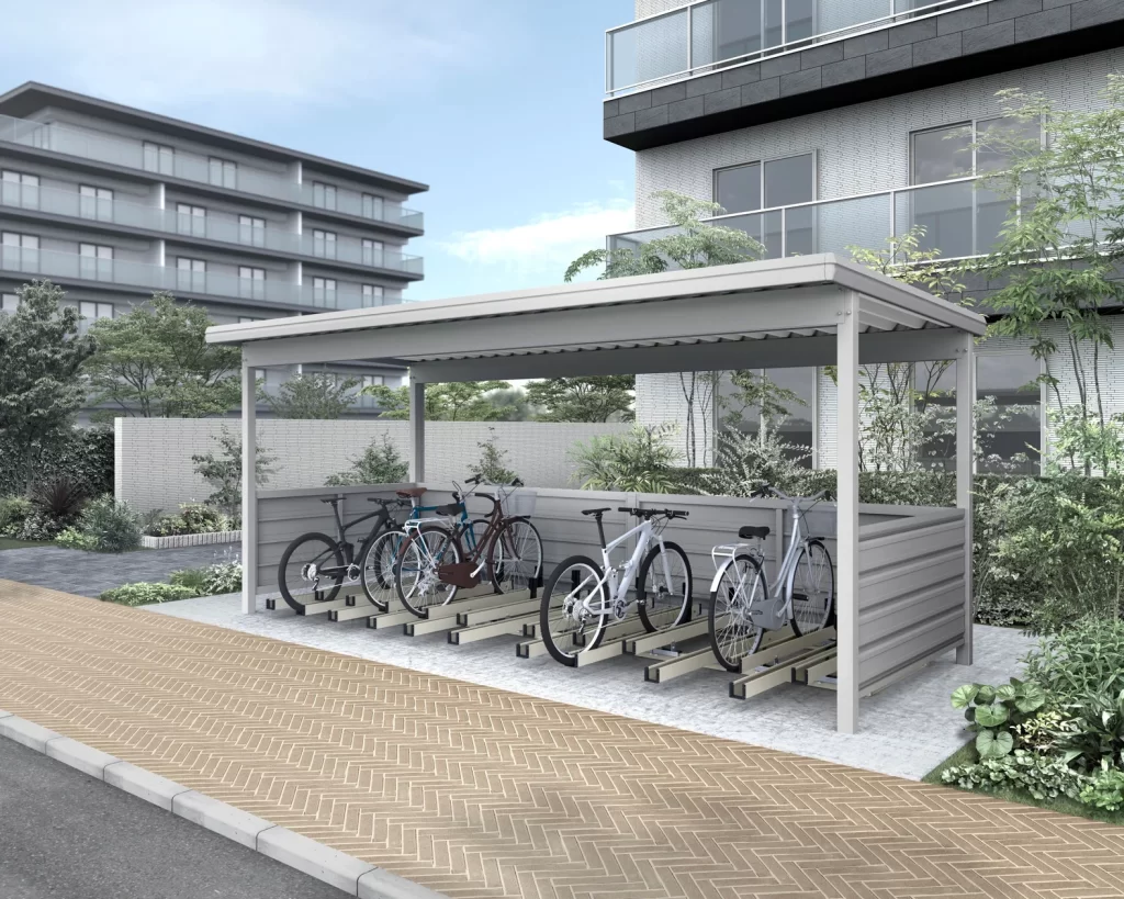 このサイクルポートは、側面と背面に袖パネルが標準装備されています。