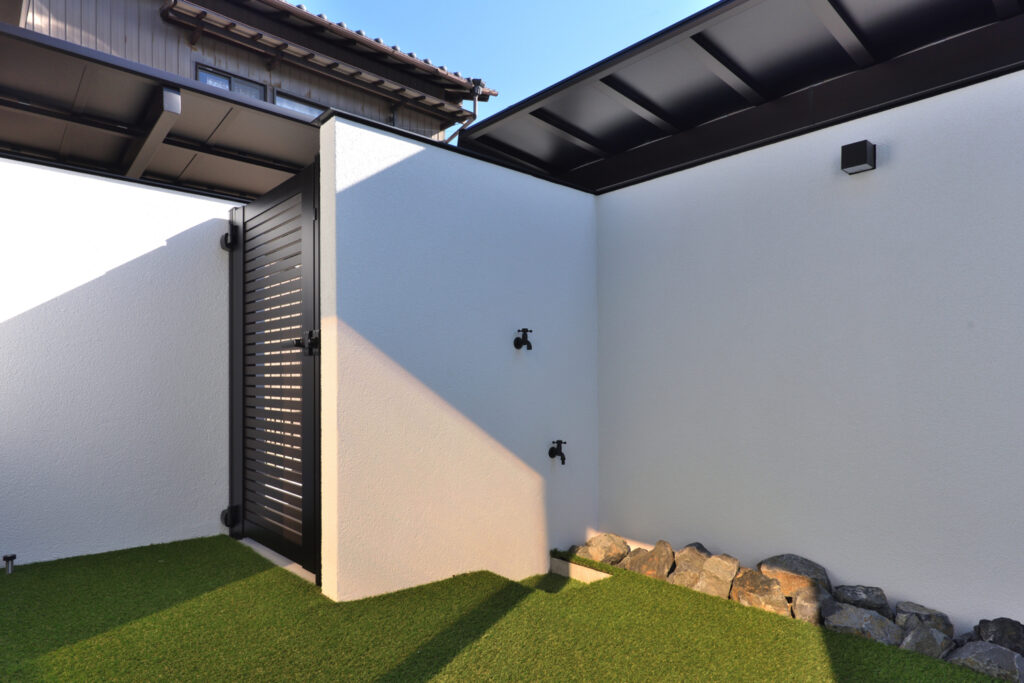 本記事では、白と黒を基調とした外構デザインや、愛犬への優しさが垣間見える工夫をご紹介します。