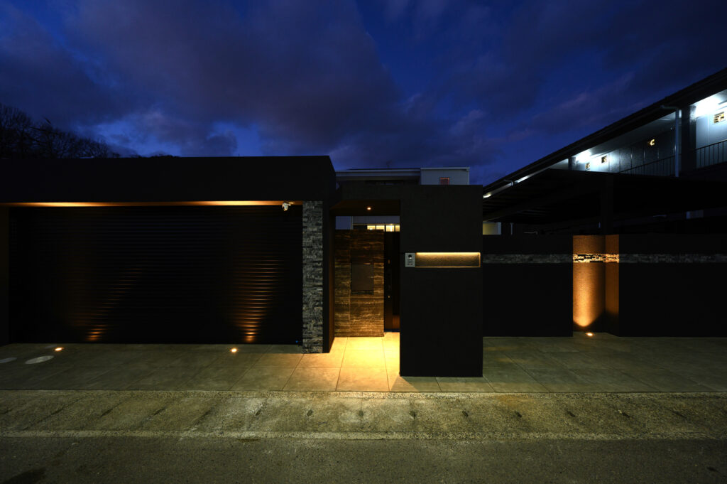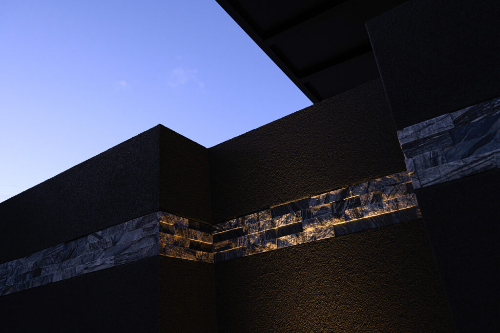 そのため、素材や色味は黒をベースとしながらも、異素材を組み合わせて質感と立体感を演出し、外観全体に重厚感を持たせています。