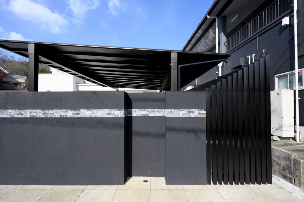 ブラックポリカは見た目にも高級感があり、外構全体に調和しています。さらに、天井材のポリカは採光性も考慮され、暗くなりすぎない設計となっています。