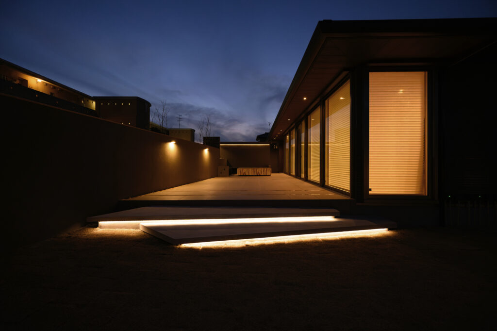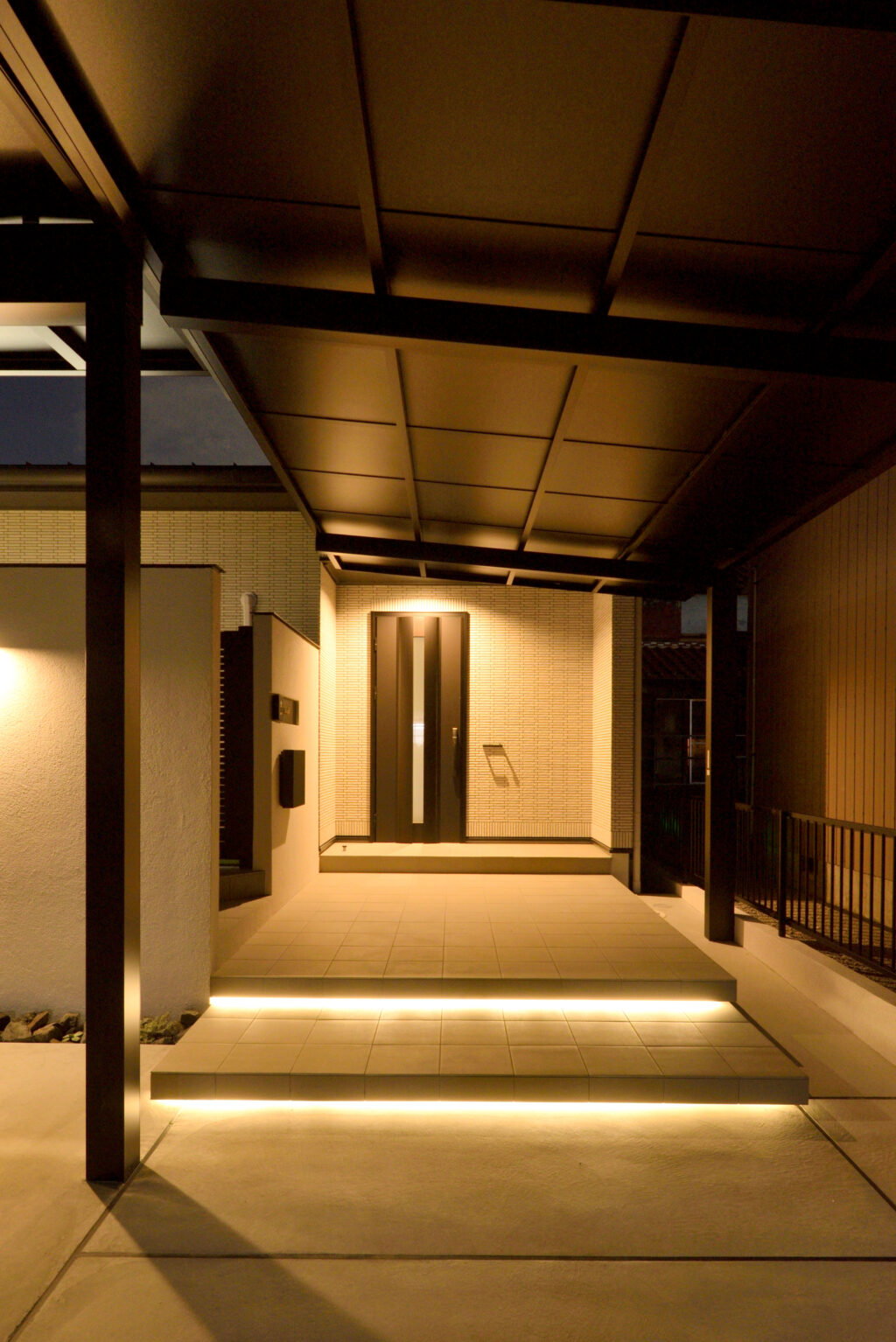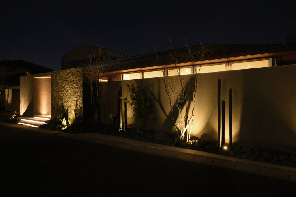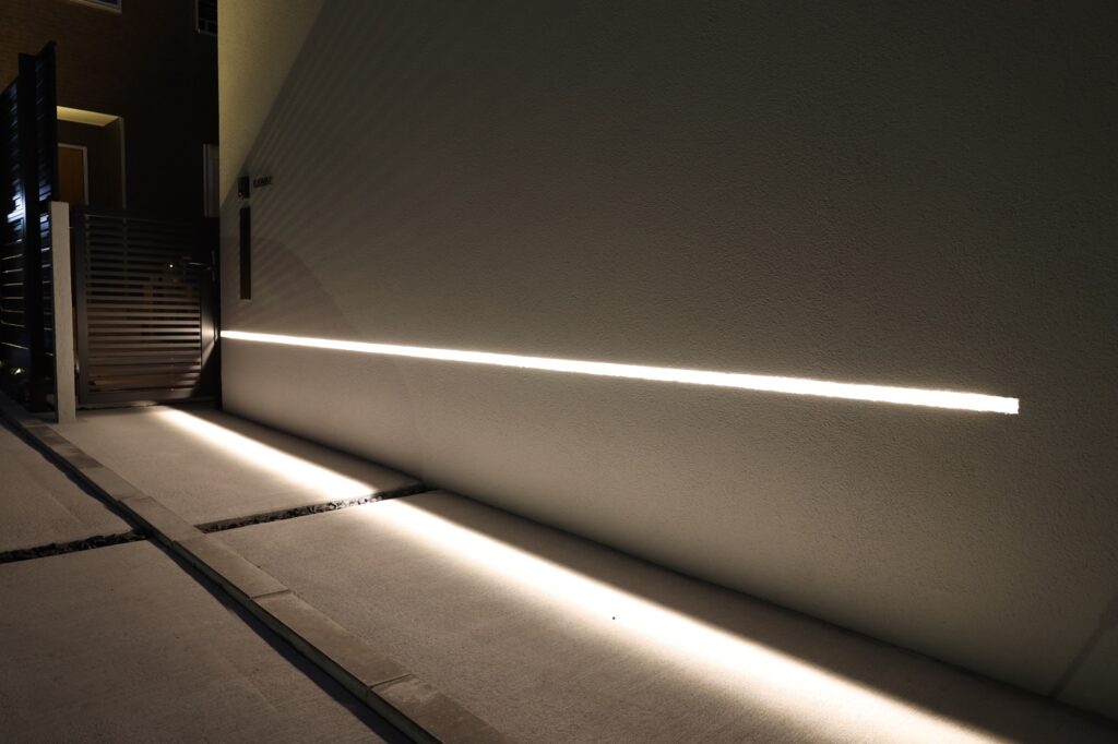 また、アプローチ部分にはラインライトを採用し、夜間の足元をやさしく照らしています。