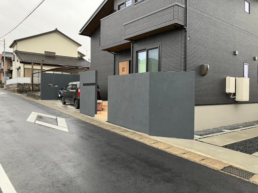 お家の外壁の色がグレーであることを考慮し、グランドアートウォールも外壁に合わせた色に統一することで、一体感のあるデザインに仕上げました。